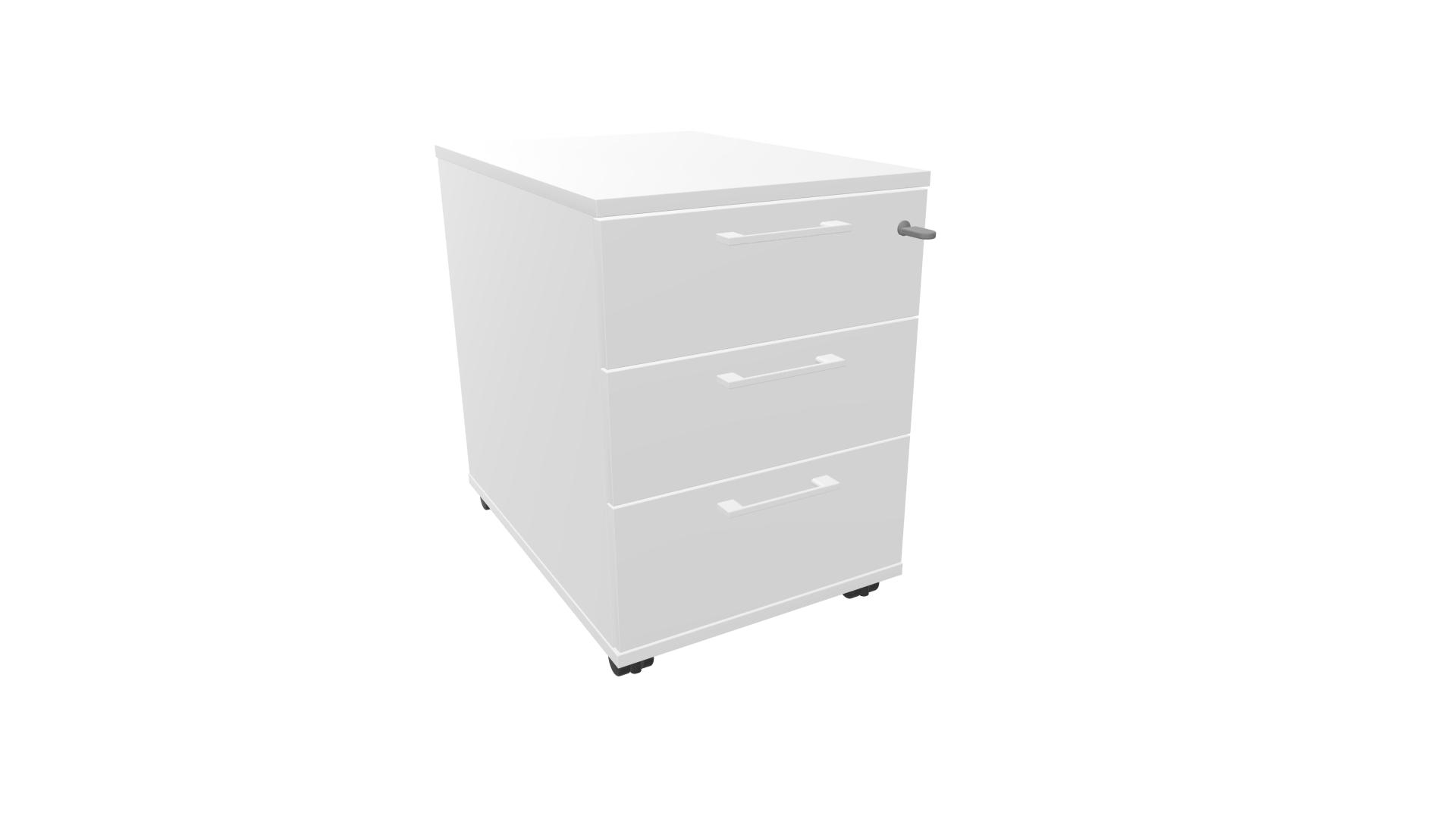 Caisson mobile 3 tiroirs – Monochrome blanc – Poignées blanches.