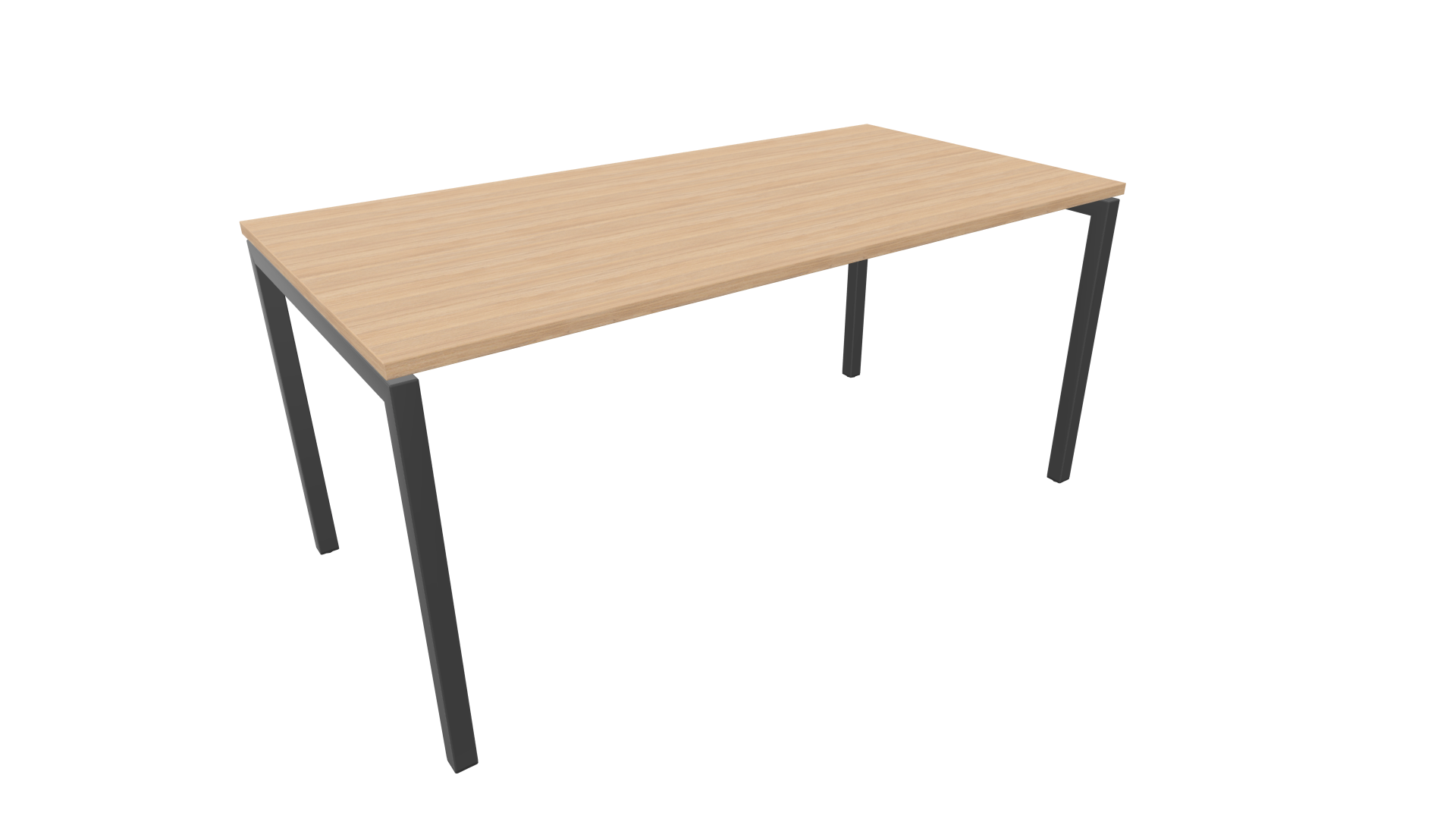 Plan de travail droit plateau mélaminé chêne ambré – Piétement arche ouverte anthracite.