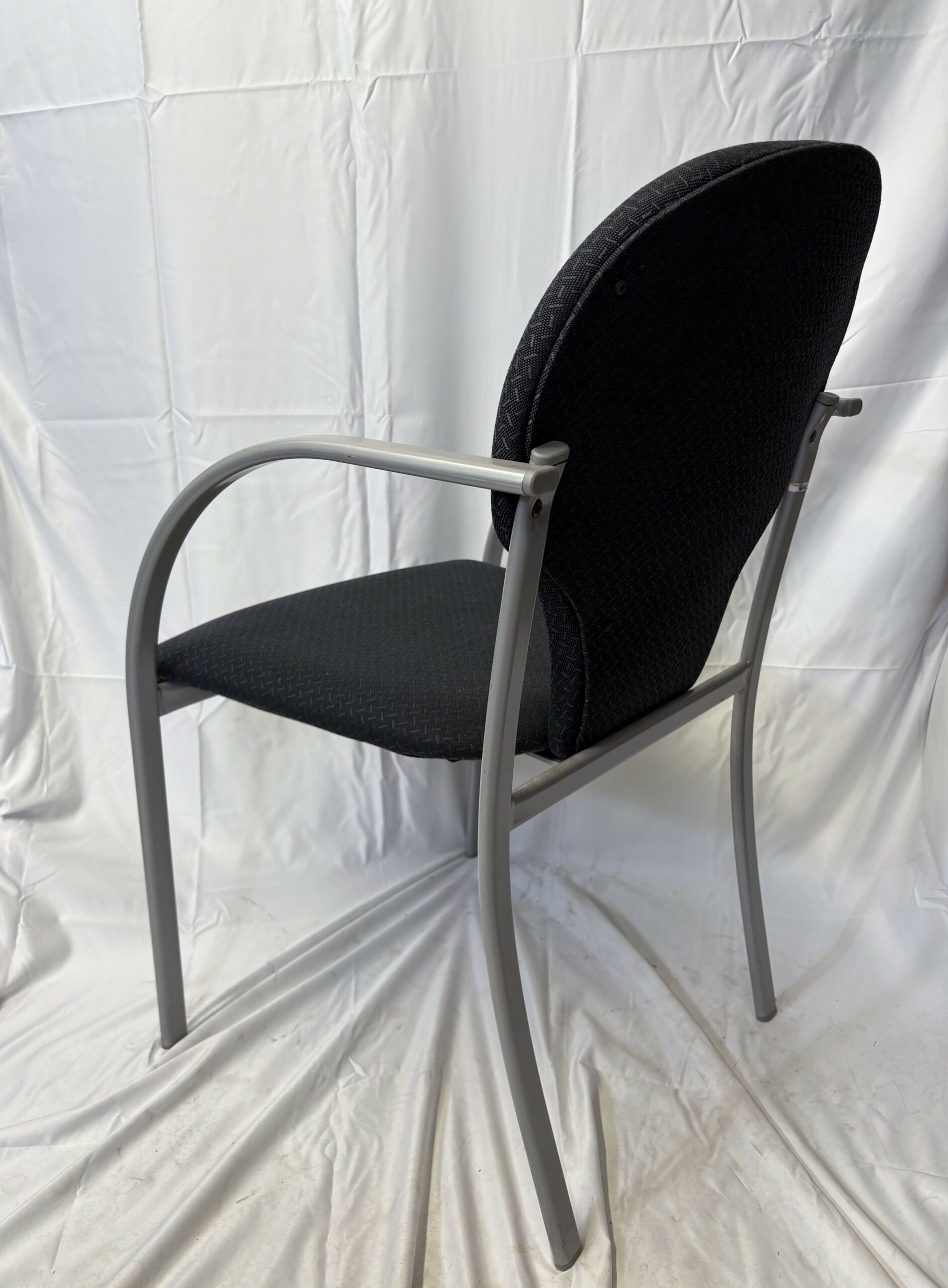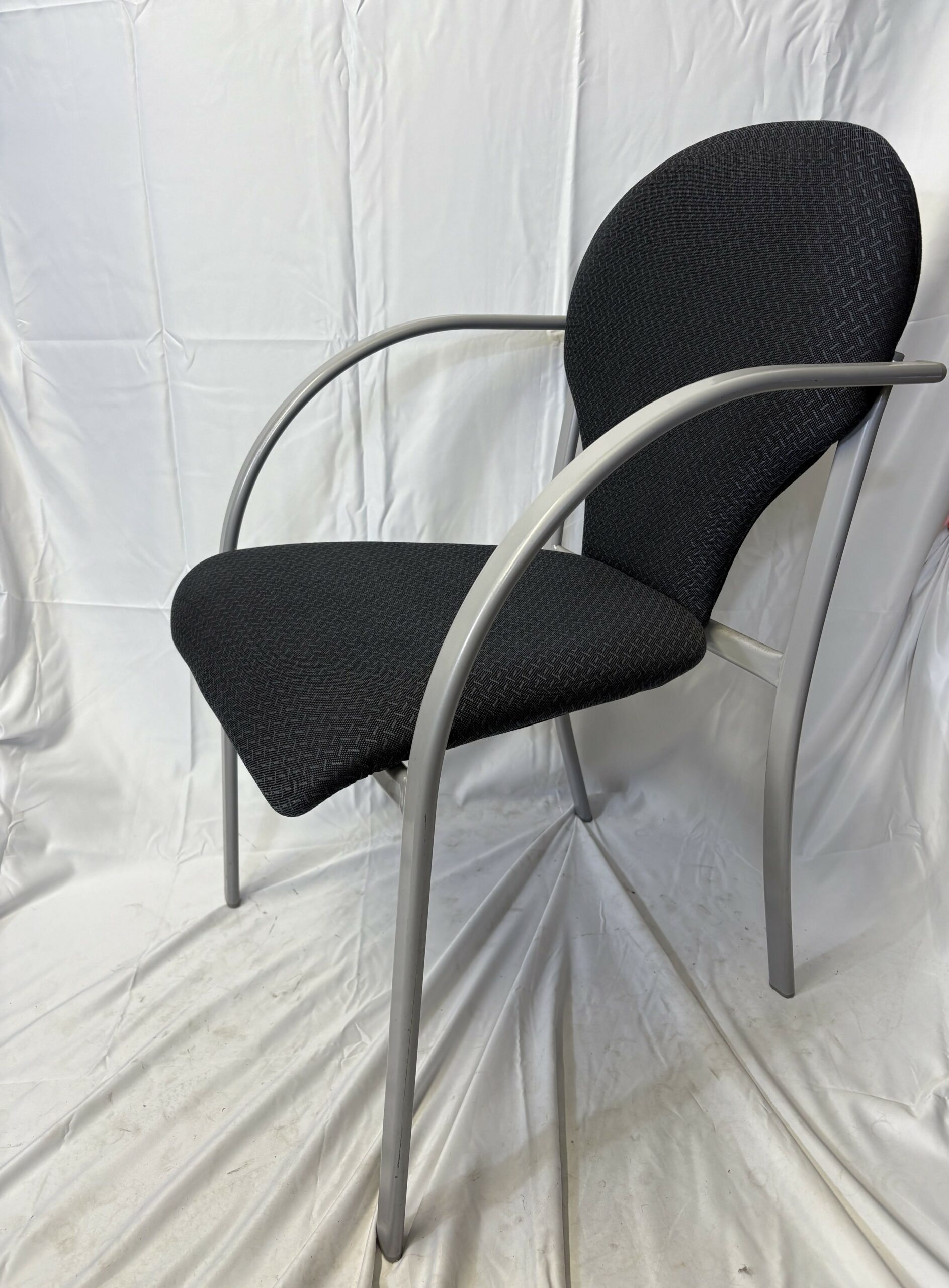 Chaise 4 pieds gris et assise et dossier tissu bleu + accoudoirs