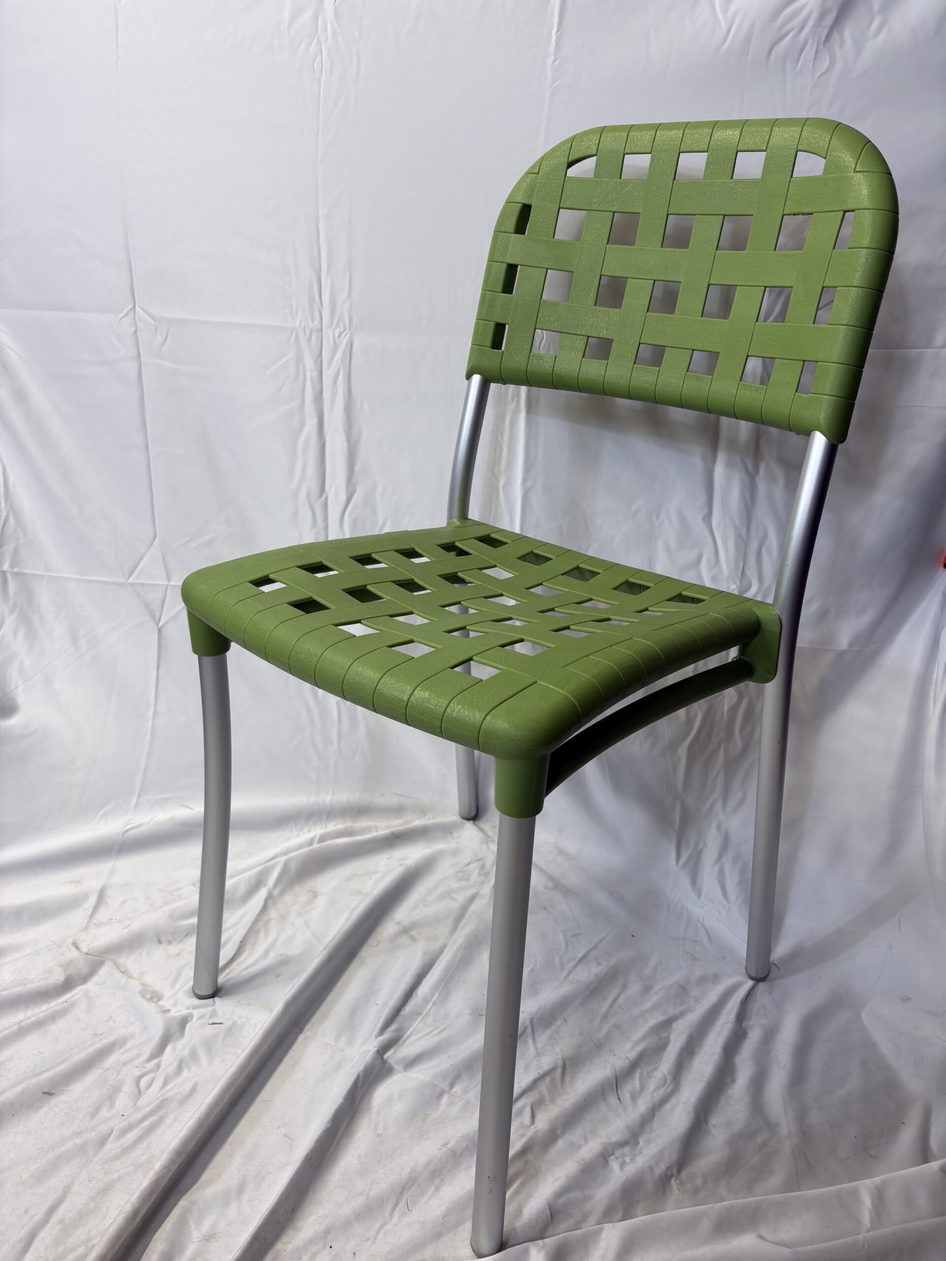 Chaise verte ajouré, 4 pied gris alu